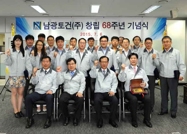 남광토건㈜ (001260, 대표이사 최장식(崔長植)은 6일 서울 강동구 길동 본사 대회의실에서 본사 전임직원이 참석한 가운데 창립 68주년 기념식을 개최하고 29명의 장기근속자를 격려하고 시상했다.