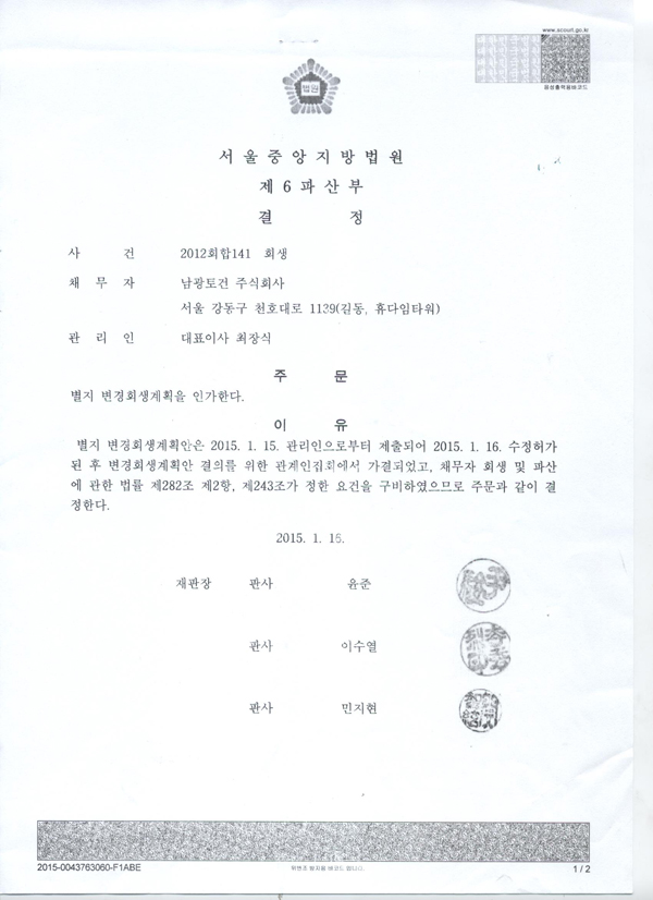 변경 회생계획 인가 첨부이미지 : 001.jpg