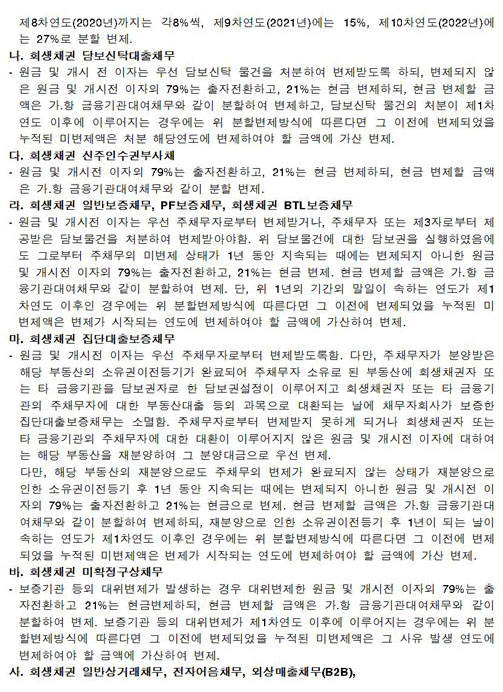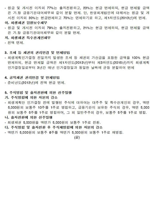 회생계획인가 결정문 첨부이미지 : 회생계획안 요지002.jpg