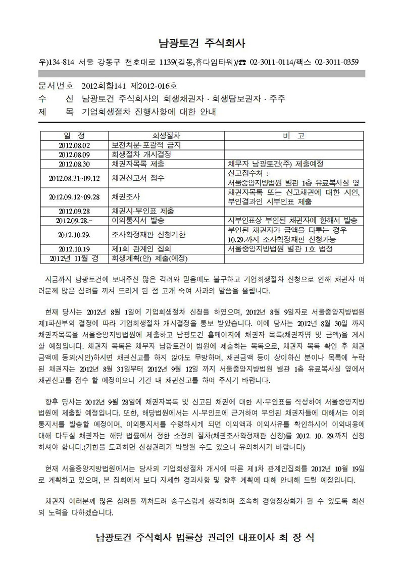 기업회생절차 진행사항에 대한 알림 첨부이미지 : 기업회생절차 진행사항에 대한 알림(20120824)001.jpg