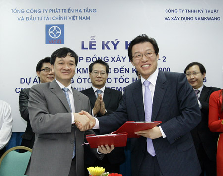 남광토건㈜(대표이사 사장: 이동철 李東哲)은 “베트남 하노이~하이퐁 고속도로 2공구 건설공사”의 계약을 체결했다고 7일 밝혔다. 계약 금액은 1억 달러(한화 약 1,138억원, 환율 1$=1,122원 기준)로 남광토건 2009년 매출액(7,834억) 대비 14.5%에 해당하는 규모이다.