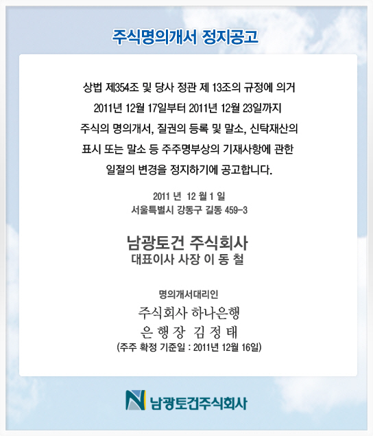 주식명의개서 정지 공고(주주명부폐쇄) 첨부이미지 : 임시주주총회 명의개서정지 홈페이지공고(20111130).jpg