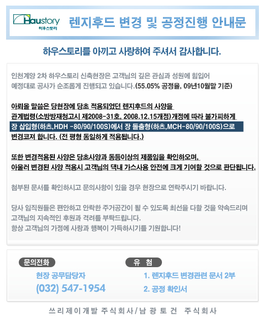 [인천계양2차]렌지후드 변경 및 공정진행 안내문 첨부이미지 : 하우스토리소식.jpg