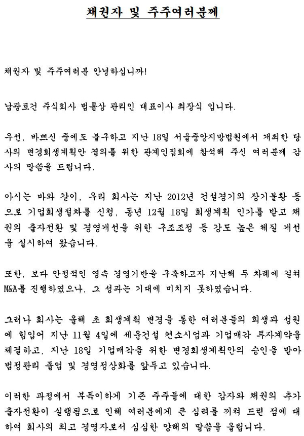채권자 및 주주여러분께 첨부이미지 : 20151222 이해관계자 감사의 글001.jpg