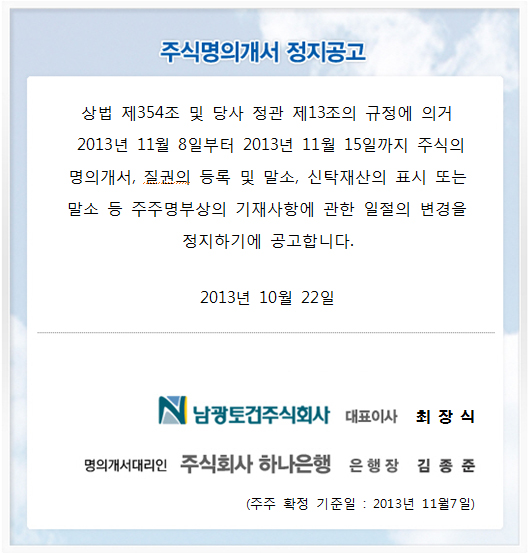 주식명의개서정지 공고 첨부이미지 : 20131022.jpg