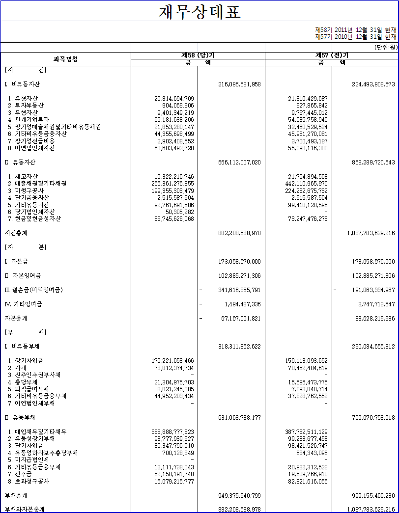 제58기 결산공고 첨부이미지 : 58기 재무상태표.jpg