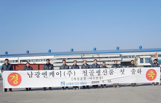 남광토건(대표이사 사장 이동철 李東哲)은 2009년 1월 15일, 개성공단 철골공장에서 생산된 철골생산품 500톤을 대경기계기술㈜ 여수공장 신축 공사현장에 출하한다고 밝혔다.